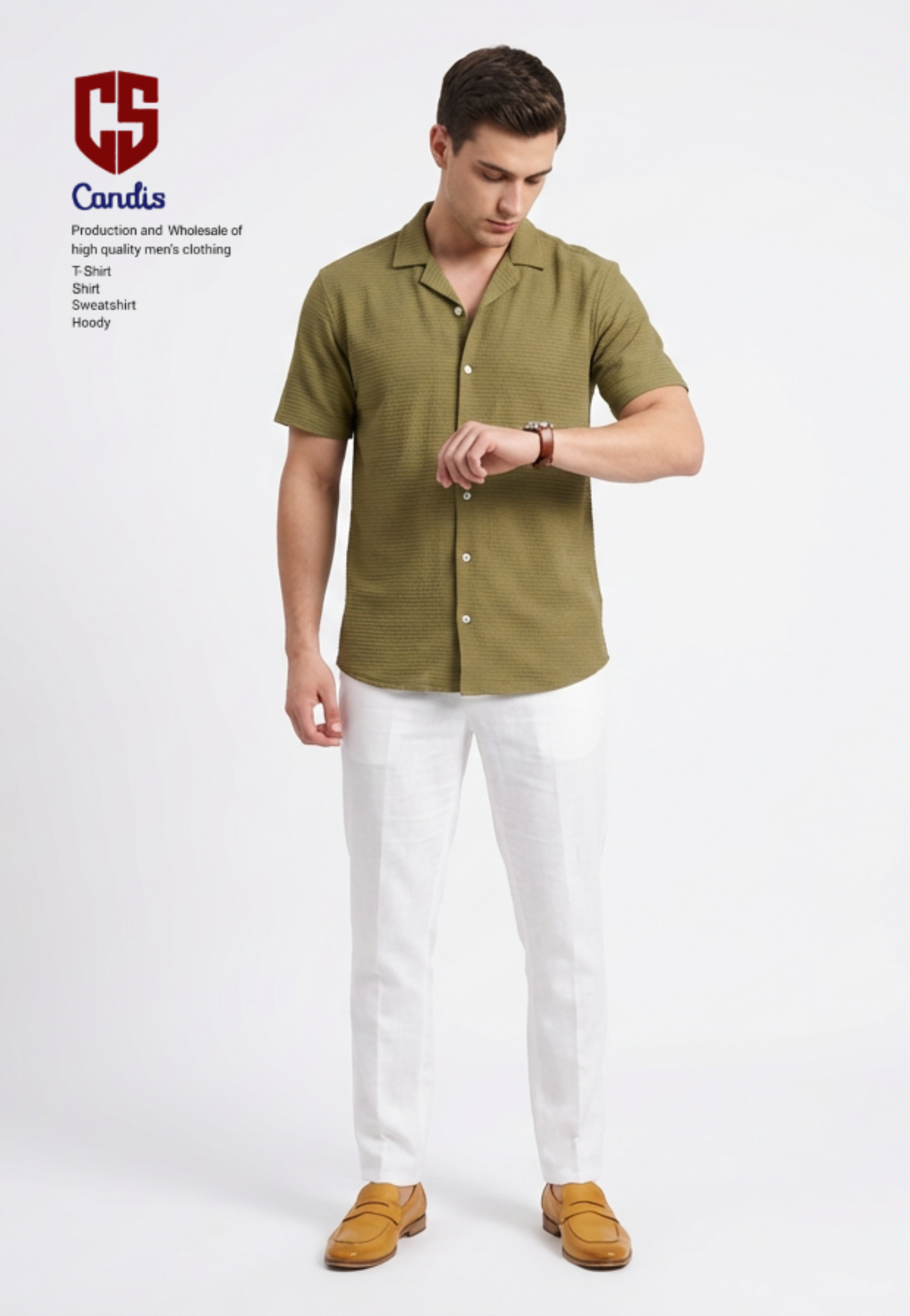 پیراهن مردانه آستین کوتاه ژاکارد پنبه راه راه