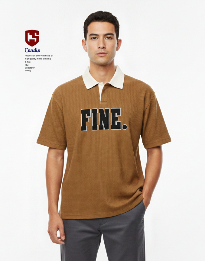 تیشرت مردانه یقه دار ماکان قواره باکسی کندیس