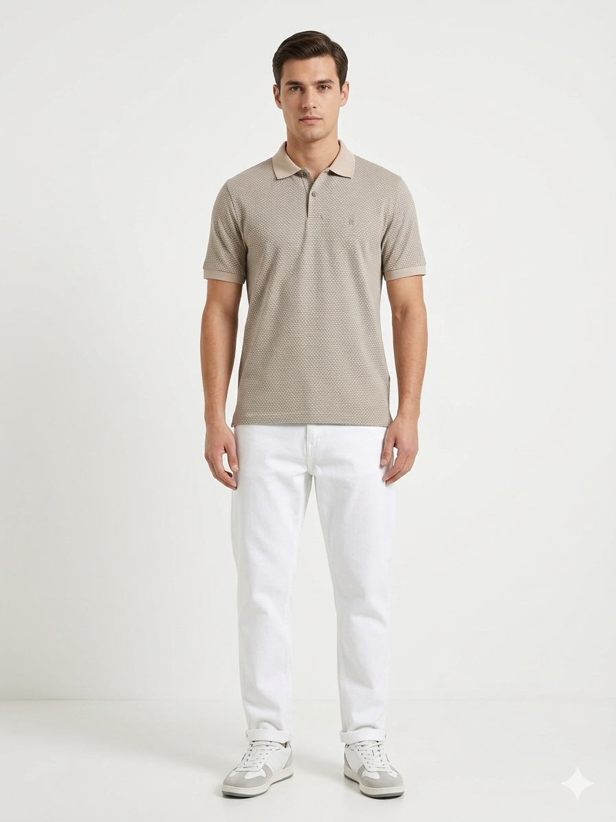 تیشرت یقه دار نیم زیپ ژاکارد چاپی